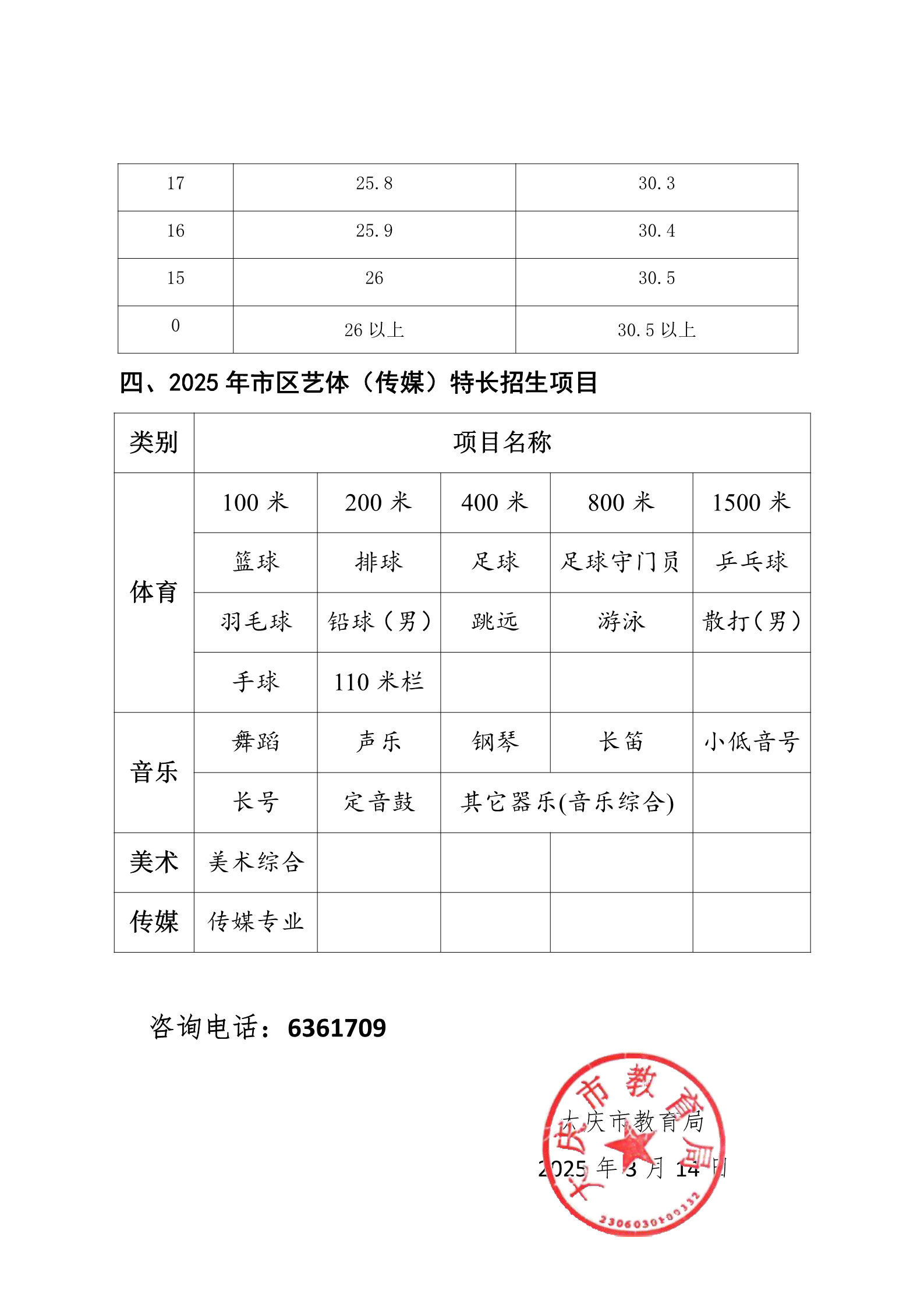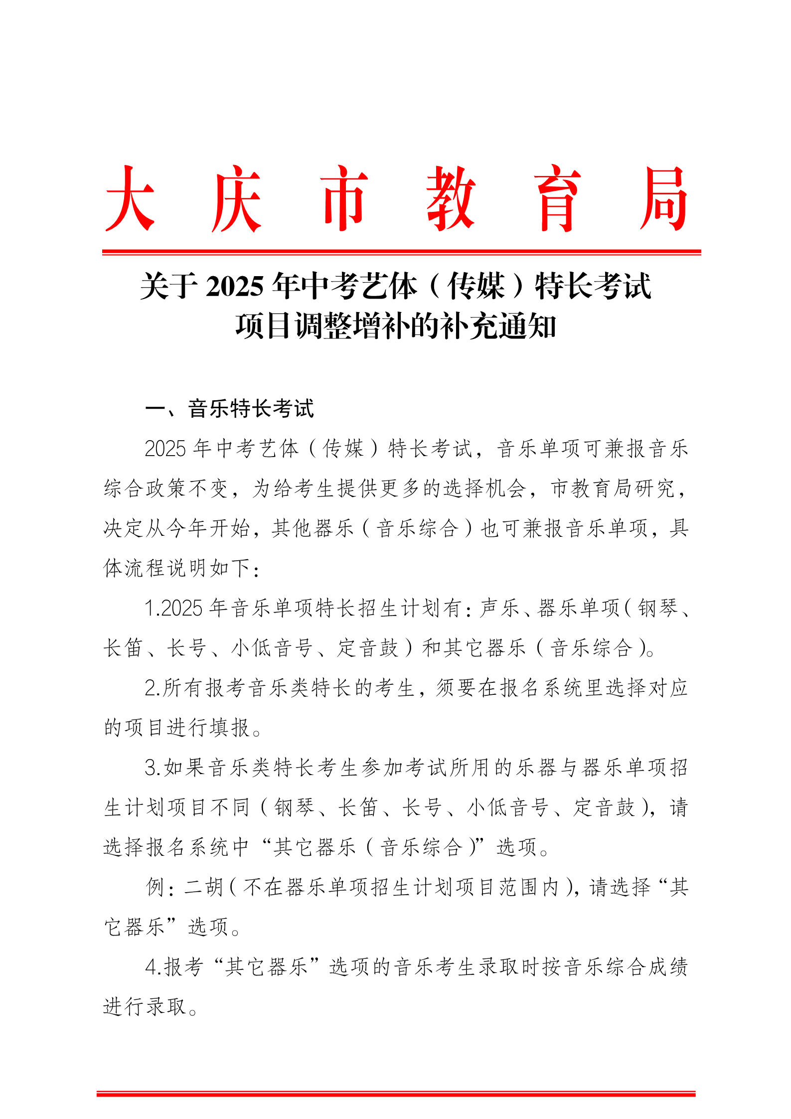 黑龙江大庆2025年中考艺体(传媒)特长考试项目调整增补的补充通知