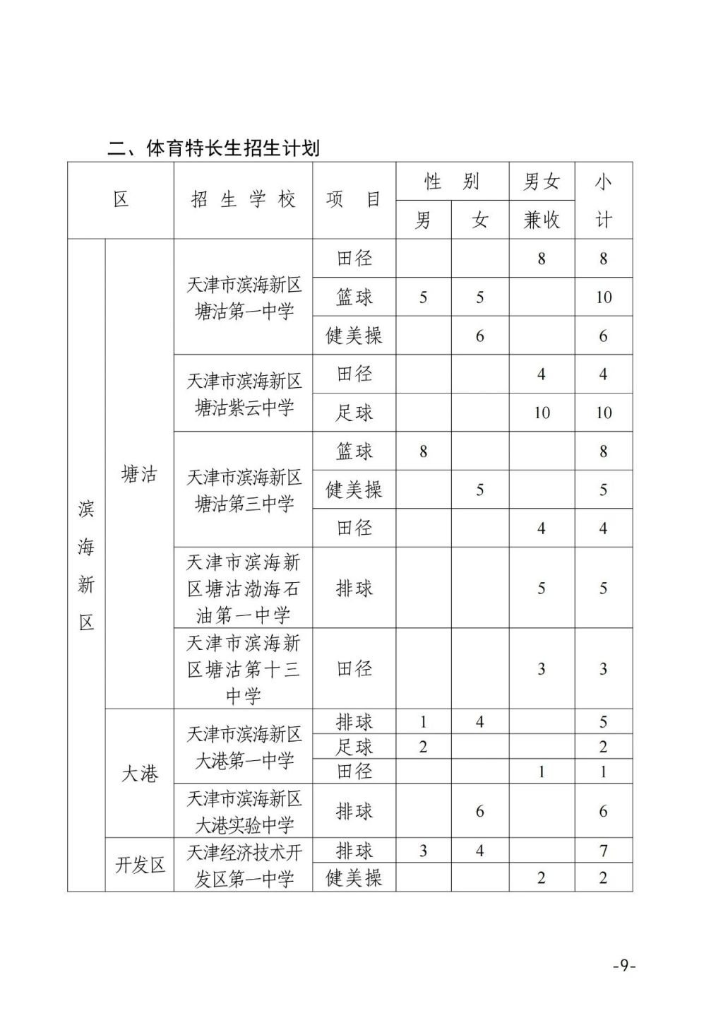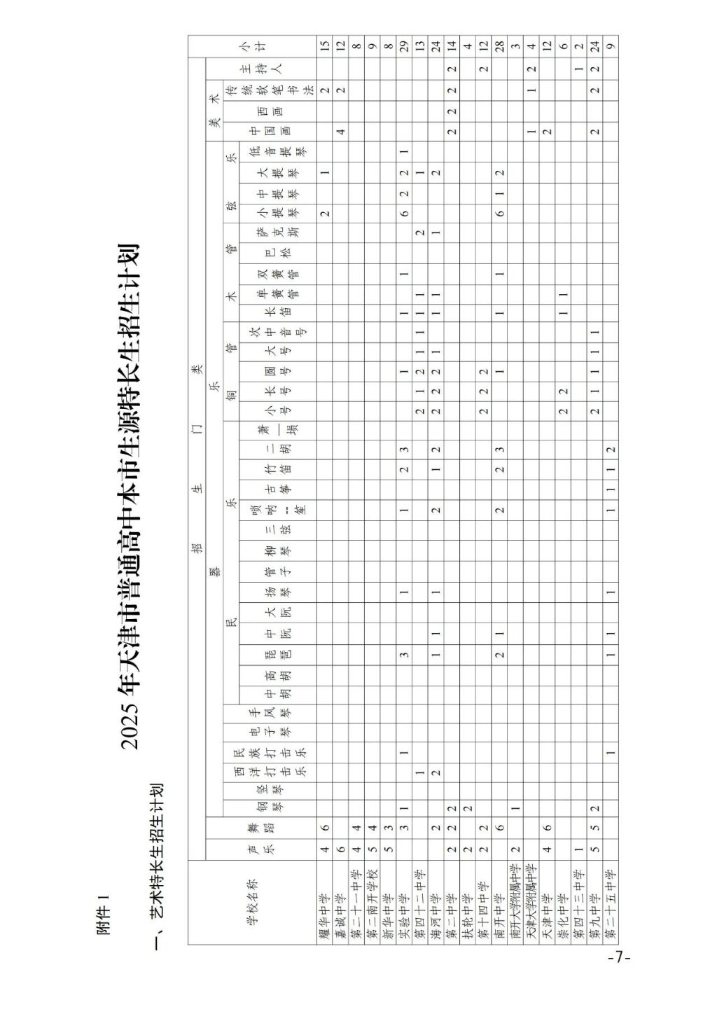 1.2025年天津市普通高中本市生源特长生招生计划