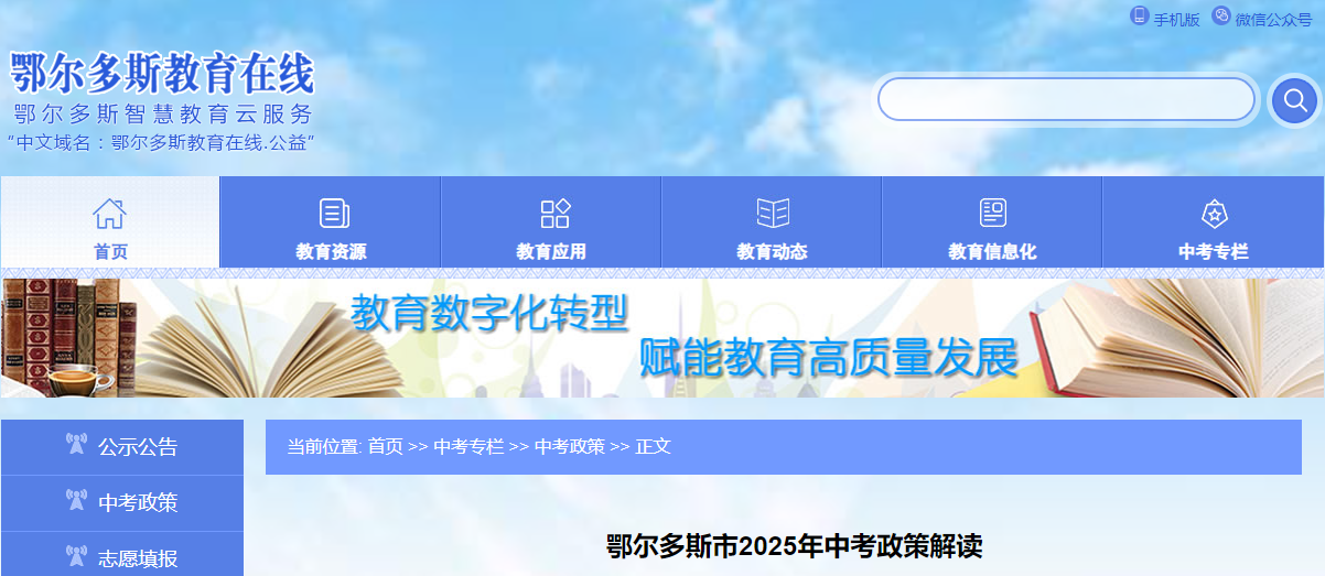 内蒙古鄂尔多斯市2025年中考政策解读