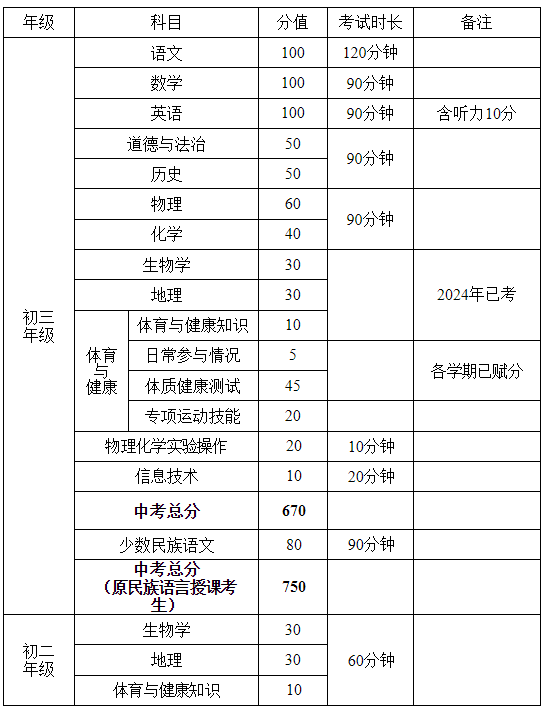 2023年我市生物学、地理科目学业水平考试满分均为50分,体育与健康知识满分为10分;2024年、2025年自治区生物学、地理科目学业水平统考满分均为30分,体育与健康知识满分为10分。
