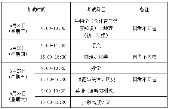二、中考日程安排